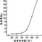 33.21三体综合征患儿的发病率与母亲年龄的关系如右图所示,预防该遗传病的主要措施是( )