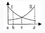 某种群死亡率如图中Ⅱ,出生率如图中Ⅰ,则在哪一时期此种群的个体总数达到其生活环境负荷量的顶点
