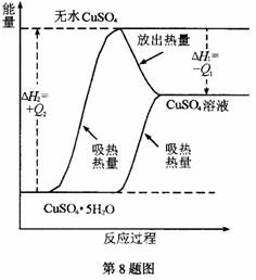 (A) 根据胆矾溶于水吸热,无水硫酸铜溶于水放热,以及胆矾加热生成无水硫酸铜的热化学方程式可得,胆矾、无水硫酸铜及CuSO4溶液三者能量高低关系如图所示。