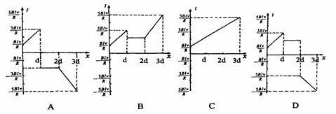 12.如图所示,垂直纸面向里的匀强磁场区域宽度为d,磁感应强度的大小为B。一电阻为R的梯形导体框(上、下底长度分别为L、5L)从图示位置沿水平向右方向以速度v匀速穿过磁场区域,规定电流逆时针方向为正,在下图中线框中感应电流与线框移动距离x的关系图象正确的是( )