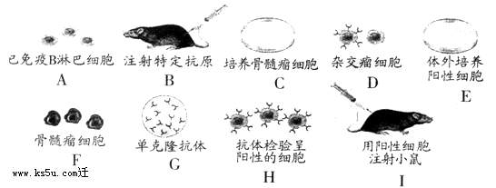 ①请用箭头把代表各图解的字母按单克隆制备过程的顺序连接起来 。(3分)