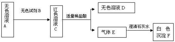 (1)无色试剂B是 (填名称),气体E是 (填化学式,下同),白色沉淀F是 。