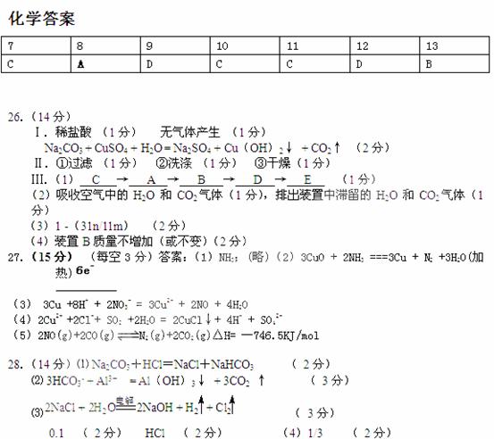 (4分。无催化剂条件不扣分,生成物中无NaCl扣1分,其他错误不给分)