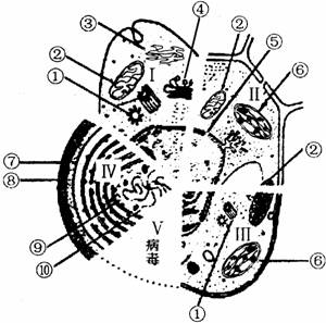 9.(17分)右图代表自然界中处于不同分类地位的5种体现生命现象的单位。图中Ⅰ、Ⅱ、Ⅲ、Ⅳ绘出了各自区分其他种生物的标志结构,请回答。