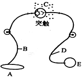 (1) 假设E是猫爪中的感受器,写出猫“火中取栗”时神经冲动的