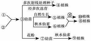 6.①、②两植株杂交得到③,将③作进一步处理,如下图所示。有关分析错误的是( )
