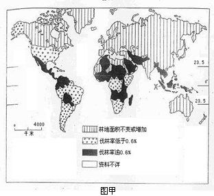 (1)每年伐林率高地区主要分布在 纬度的 (类别)国家,这些国家多数为 而伐林。(6分)