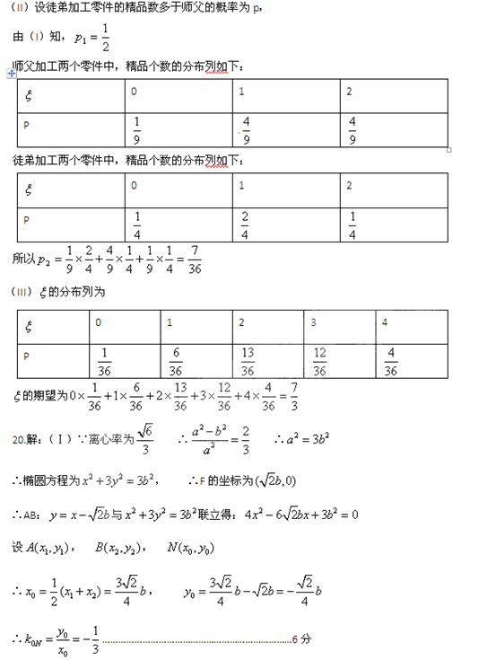 19.某工厂师徒二人各加工相同型号的零件2个,是否加工出精品均互不影响.已知师父加工一个零件是精品的概率为