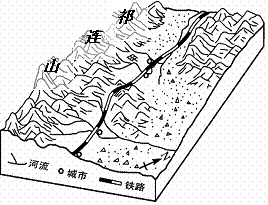 C.河漫滩平原 D.峡谷 2.图示地区城市的分布特点是