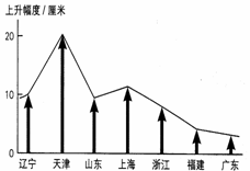 科学家观测研究表明,近30年来我国沿海海平面总体上升了9厘米,但沿海各省、市、自治区海平面的上升幅度并不相同。读图回答5--6题。
