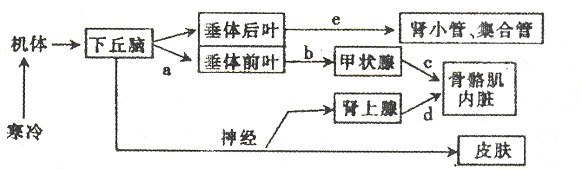 ①当受到寒冷刺激时,a、b、c、d激素的分泌均会增加