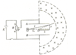 m.将变阻器滑动头由a向b慢慢滑动,改变两板间的电压时,带电粒子均能从不同位置穿出极板射向右侧磁场,且两板间电压最大时,对应的粒子恰能从极板右侧上边缘穿出.