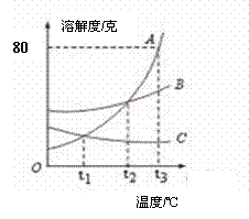 (2)当三种物质的溶解度关系为B>A>C时的温度为t,则t的取值范围是_______________。