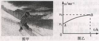 如图甲所示,滑雪运动员由斜坡高速向下滑行时其速度88时间图象如图乙所示,则由图象中AB段曲线可知,运动员在此过程中 ( B )