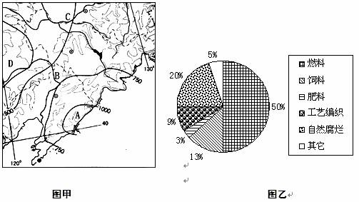 (3)C地某校社会实践活动小组对农村秸秆的利用方式进行了调查,统计结果如图乙。 请你从发展生态农业的角度,评价该地区的秸秆利用是否合理,并阐述理由。(6分)