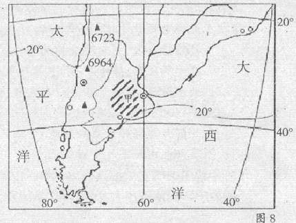 36.图8是南美洲部分区域某月份等温线分布图。结合所学知识回答下列问题。(36分)
