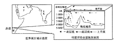 读世界某区域示意图及印度洋沿赤道纵剖面图。