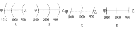 右图为我国某地某日天气系统示意图,甲、乙、丙、丁四地为该天气系统控制下K*s^5#u的四个城市。甲地气压为 1010 百帕,乙地气压为 990 百帕。读图完成8一9题。