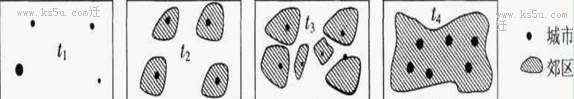 C.人口和产业活动在空间上的分散 D.城市的人口由多变少