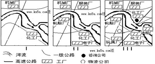 下图 “某城区发展变化示意图”。读图完成13-14题。