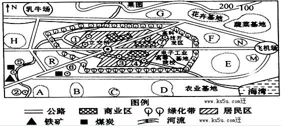 (5)拟在G、H、R中选一处建长途汽车站, 处最合适。(2分)