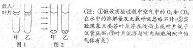 (2)用真空泵抽去上述两支试管内液体中和叶肉细胞间隙中的气体气,甲、乙试管中的叶片都沉到试管底部。再把经真空泵处理过的两支试管都放在正常的光照条件下(如上图2所示),光照一段时间后的实验现象是:甲试管中的叶片 ,原因是光照下叶片不能进行 ;乙试管中的叶片 ,原因是光照下 释放出的氧气多于 消耗的氧气。