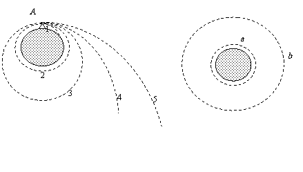 (2)如图甲所示,从地球上一个山顶的A处以不同速度抛出物体,其轨迹分别为