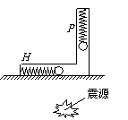 3.(08重庆)20.某地区地震波中的横波和纵波传播速率分别约为4km/s和9km/s。一种简易地震仪由竖直弹簧振子P和水平弹簧振子H组成,如图所示。在一次地震中,震源在地震仪下方,观察到两振子相差5s开始振动,则 ( )