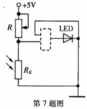 7.如图所示是模拟路灯的光控电路,RG为光敏电阻,LED为发光二极管,为实现LED天暗时发光、天亮时熄灭,下列说法中正确的是