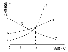 19(4分)右图是A、B、C三种物质的溶解度曲线。