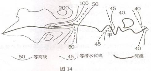 (10分)读图14“我国东部地区某河流简图”,比例尺是1/2000000,请据图回答。