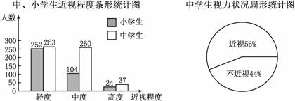19.某市青少年健康研究中心随机抽取了本市1000名小学生和若干名中学生,对他们的视力状况进行了调查,并把调查结果绘制成如下统计图(近视程度分为轻度、中度、高度三种).