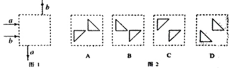 空气中两条光线 a和 b从方框左侧入射,分别从方框下方和上方射出,其框外光线如 图 1所示。方框内有两个折射率 n=1.5的玻璃全反射棱镜。图 2给出了两棱镜四种放 置方式的示意图,其中能产生图 1效果的是