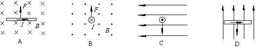2.在下列图中,标出了磁场B的方向、通电直导线中电流I的方向,以及通电直导线所受磁场力F的方向,其中正确的是: