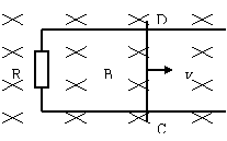 1.如图所示,在磁感应强度为0.5T的匀强磁场中,长20cm的导体CD在U形金属框上以5m/s的速度向右滑动,如果R=2Ω,其它导线上的电阻忽略不计,且金属框足够长。求:
