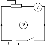 如图所示,是用电流表和电压表测电池的电动势和内电阻,当滑动变阻器滑片在某一位置时,电流表和电压表的读数分别是0.2A和1.30V,改变滑片的位置后,两表的读数分别是0.3A和1.20V,求:电池的电动势和内阻。