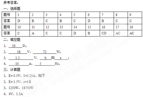 ⑵当ab两点接一理想电流表时,电流表的读数是多少?