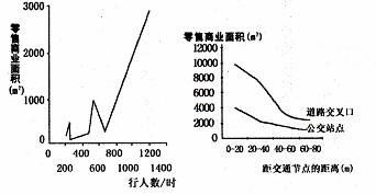 ②零售商业面积与行人流量之间既存在负相关、也存在正相关关系