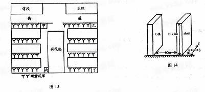 材料一:图13和图14分别是我国某小区平面图和小区相邻两栋住宅楼分布示意图。