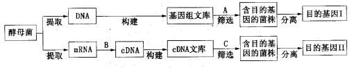 (1)图中基因组文库 cDNA文库(填“大于”或者“小于”),B过程需要的酶是 。