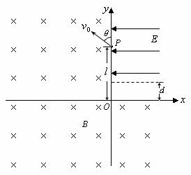 m/s、方向与y轴正方向成夹角θ= 53°并与磁场方向垂直.不计粒子的重力作用.已知sin53°=0.8,cos53°=0.6,求: