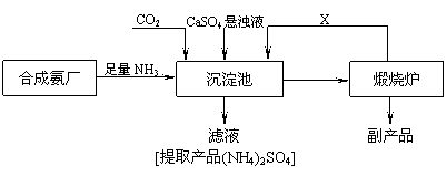 (11分)某化工厂为了综合利用生产过程中的副产品CaSO4,与相邻的合成氨厂联合设计了以下制备(NH4)2SO4的工艺流程: