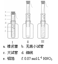 其插入广口瓶中。向小试管中注入0. 07 mol·L–1 硝酸,