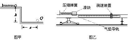(8分)在研究弹簧的弹性势能与弹簧长度改变量的关系的实验中,弹簧长度的改变量可以利用刻度尺直接测量得到,而弹性势能的大小只能通过物理原理来间接测量.现有两组同学分别按图甲(让钢球向左压缩弹簧一段距离后由静止释放,使钢球沿水平方向射出桌面)和图乙(让滑块向左压缩弹簧一段距离后由静止释放,使滑块在气垫导轨上向右运动,通过相应的测量仪器可以测出滑块脱离弹簧后的速度)两组不同的测量方案进行测量.请写出图甲方案中弹性势能与小球质量及图中各量之间的关系EP= ▲ ;图乙方案中除了从仪器上得到滑块脱离弹簧后的速度外还要直接测量的量 ▲ ;两种方案的共同点都是将弹性势能的测量转化为对 ▲ 能的测量.请你用简短的语言设计第三种研究弹簧弹性势能的方案 ▲ .