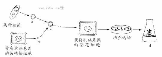 (2)金茶花是中国特有的观赏品种,但易得枯萎病,降低观赏价值。科学家在某种植物中找到了抗枯萎病的基因,用转基因方法培育出了抗枯萎病的新品种。请据图回答: