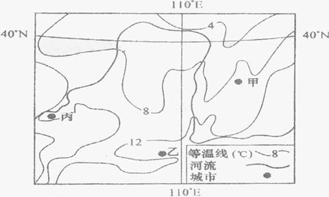 8.图中甲城市西侧的等温线向南弯曲,乙城市所在地区的等温线向西弯曲。其主要影响因素是