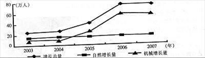 读“我国东部沿海某省2003-2007年人口增长情况图”(图8),完成14-15题。