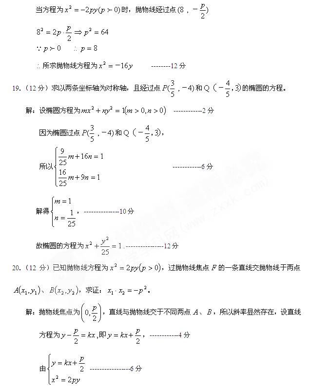 19.(12分)求以两条坐标轴为对称轴,且经过点