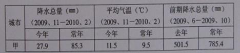 (2)结合所给材料简析该区域出现特大干旱的自然原因。(6分)