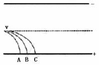21.三个质量相等的粒子,其中一个带正电荷,一个带负电荷,一个不带电荷,以相同初速度v0沿中央轴线进入水平放置的平行金属板间,最后分别打在正极板上的A、B、C处,如图所示,则 ( )
